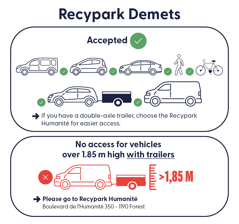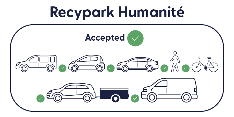 • Vehicles with a trailer and vehicles over 1.85 meters high must go to Recypark Humanité.